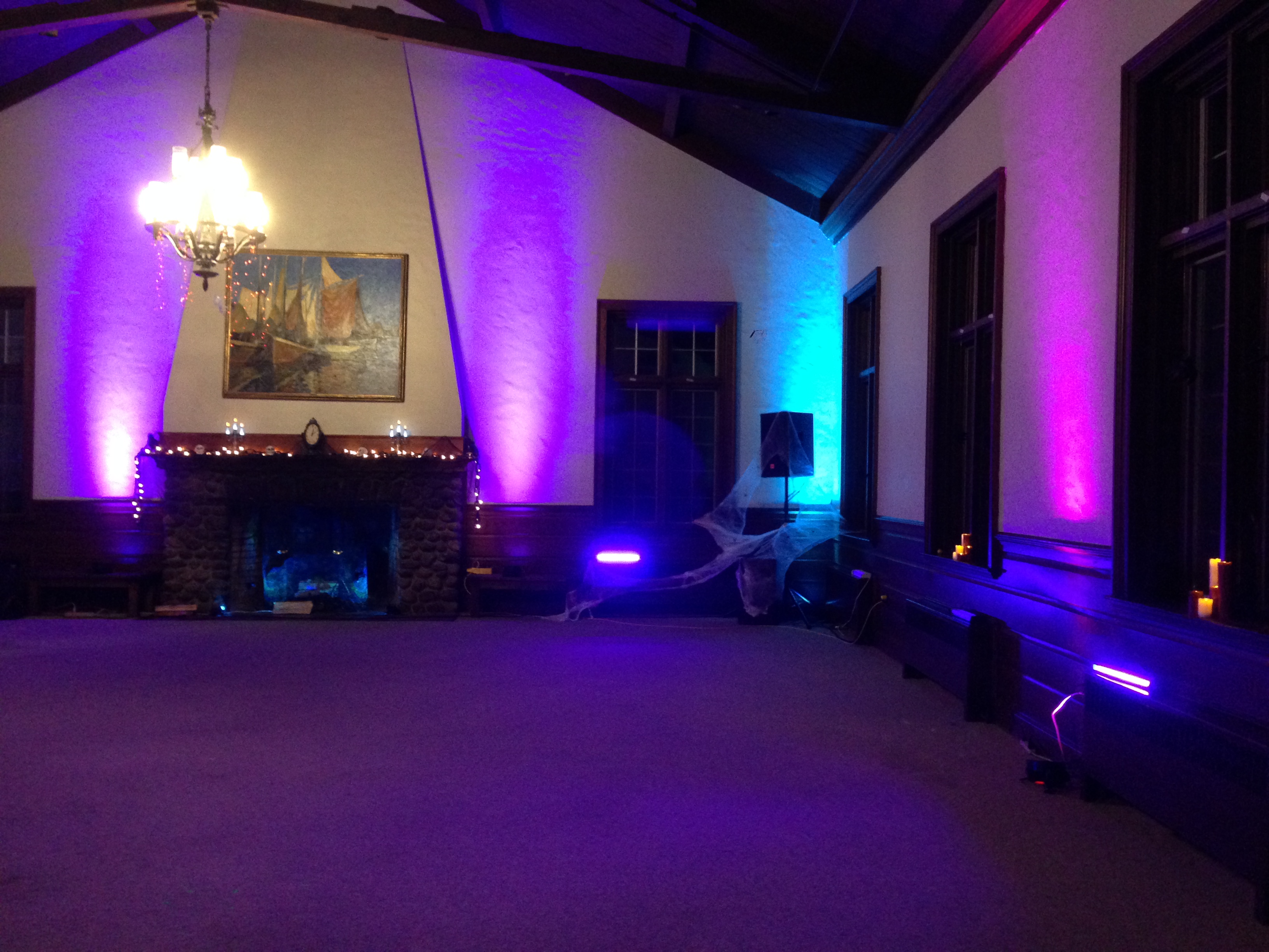 (Up-Lighing are colored lights usually along the floor or balcony aimed at the ceiling and walls to create brilliant colored effects.)